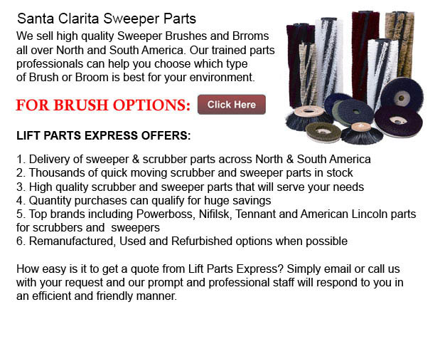 ![]() Sweeper Parts Santa Clarita - The city of Santa Clarita is the fourth largest city in Los Angeles County and the 26th biggest within California, with an approximate population of 180,000. Within the United States, Santa Clarita was recently named the the sixth safest place to live. This ranking was given by the FBI for cities more than 100,000 inhabitants. During the year 2006, Money Magazine ranked the city of Santa Clarita 18th in the top 100 places to reside. The city was incorporated during 1987 and combined the communities of Newhall, Saugus, Valencia and canyon County. Downtown Los Angeles is about thirty five kms southeast of Santa Clarita. When seen on a map Santa Clarita forms a distinctive triangle shape due to the intersection of the Antelope valley (SR-14) and Golden State (I-5). | ||